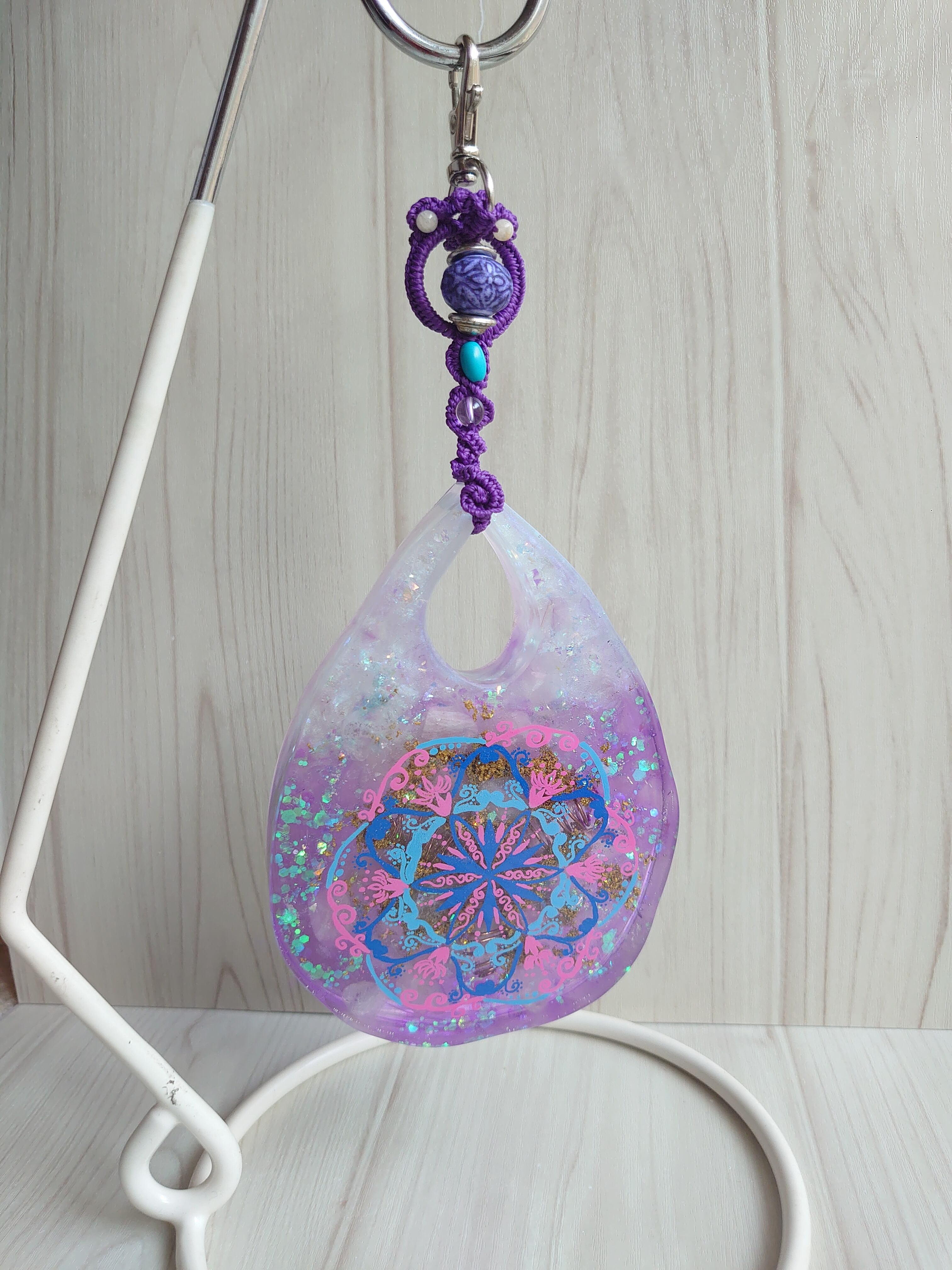 このしずく型オルゴナイトは、電磁波を中和し、周囲のエネルギーを整えてくれる特別なアイテムです。紫と曼荼羅アートの調和が、見る人の心を魅了し、優雅な空間を演出します。リビングや寝室、オフィスに吊るすことで、毎日の生活に調和と安らぎをもたらすことでしょう。